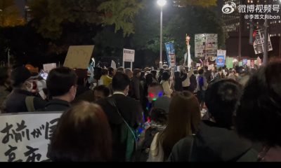 數百名日本民眾11月21日晚在位於東京的首相官邸前舉...