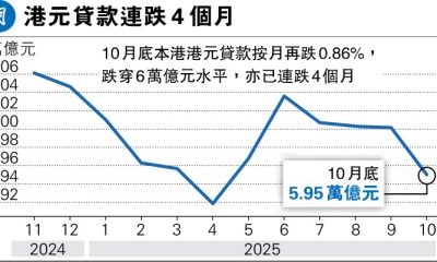 【明報專訊】金管局公布10月住宅按揭統計,月內新批出...