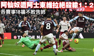 榜首之師阿仙奴今晚(6日)在英超作客遭阿士東維拉完場...