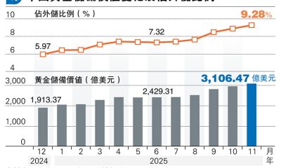 【明報專訊】根據中國人民銀行最新官方儲備數據顯示,以...