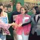【明報專訊】選民昨日投票後可獲贈寫有「同創美好未來」...