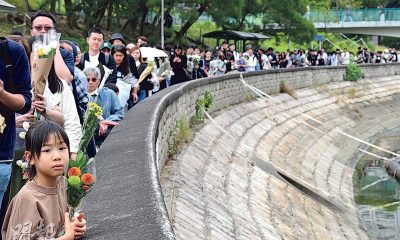 【明報專訊】來自四面八方的市民昨日手持一束束鮮花,聚...