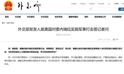 中國外交部發言人1月3日就美國對委內瑞拉實施軍事打擊...
