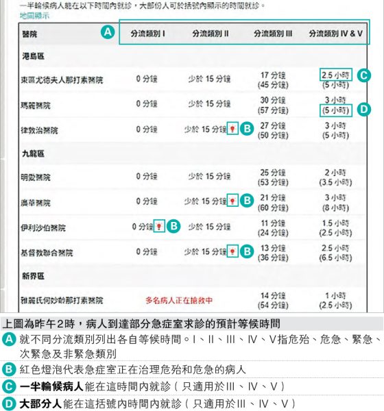 等急症時間 官網改按分流類別顯示