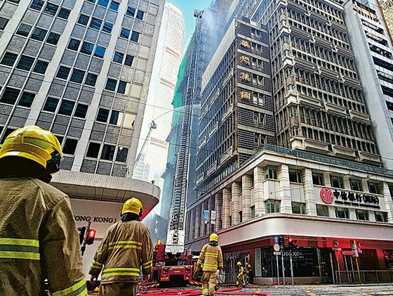 中環華懋大廈三級火 2人入ICU 沿外牆竹棚蔓延燒5小時 對岸亦見煙