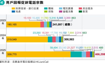 【明報專訊】促銷電話不絕,根據非應邀來電回報網站HK...
