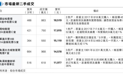 【明報專訊】雖然近日二手交投市况放慢,但市場仍錄得名...