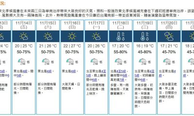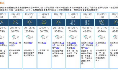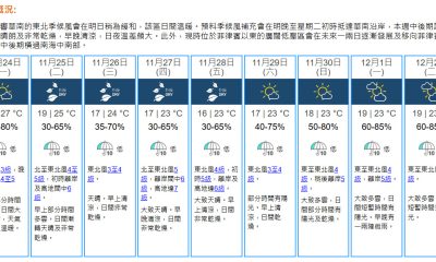 【12:10更新】天文台表示,預料較乾燥的季候風會在...
