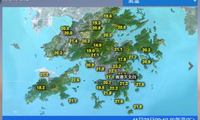 早上9時30分,天文台錄得氣溫20.1°C,相對濕度...