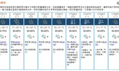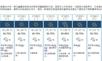 受乾燥的東北季候風影響,華南沿岸明日(18日)早上仍...