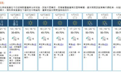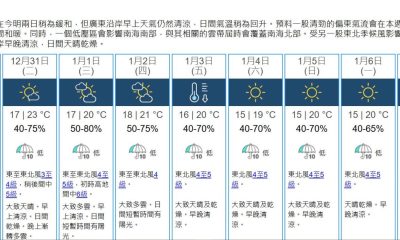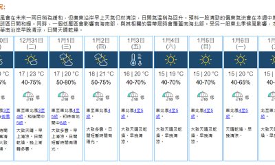 【21:10】本港地區今晚(12月31日)及明日元旦...