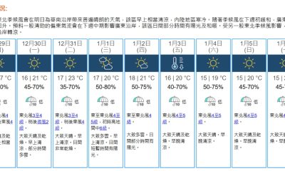 【19:45】本港地區今晚(12月29日)及明日(1...