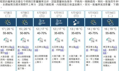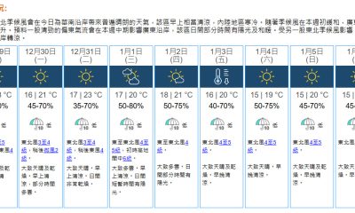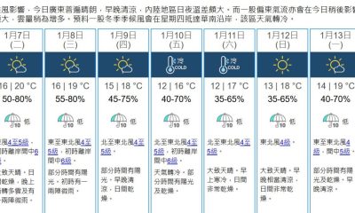 香港天文台表示,受一股強烈冬季季候風影響,周末期間(...