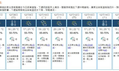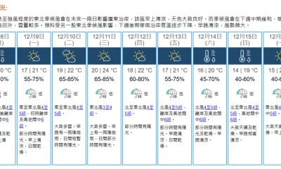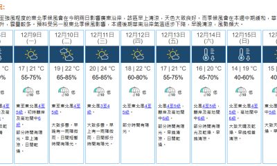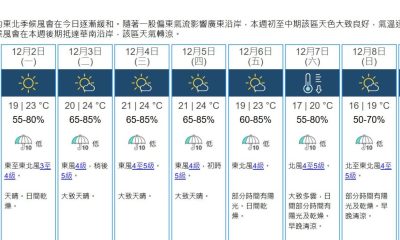 【19:30】本港地區今晚(12月1日)及明日(12...