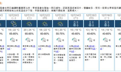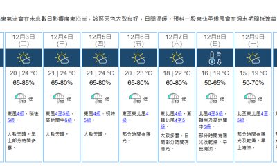 【20:00】天文台表示,影響華南的東北季候風會在今...