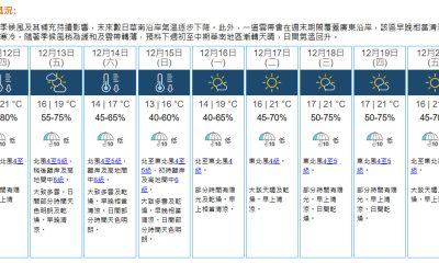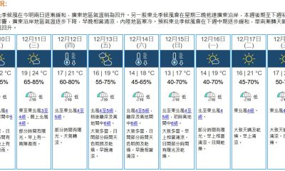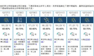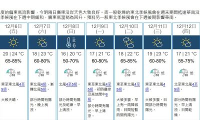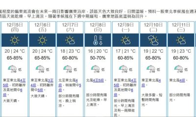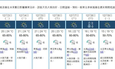 【20:30】東北季候風正影響廣東。天文台預測,本港...