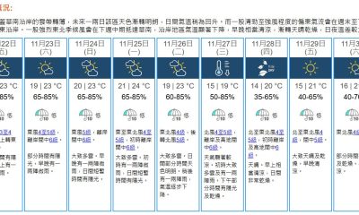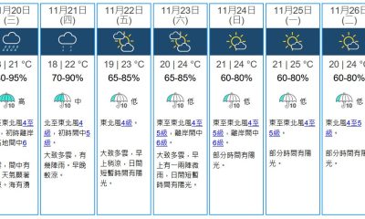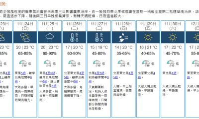 【23:10】天文台表示,八號東北烈風或暴風信號於今...