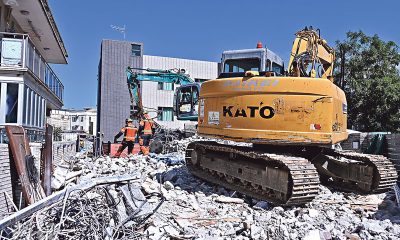 【明報專訊】元朗山貝洪田村一村屋昨早進行清拆工程期間...