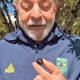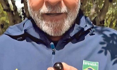 【明報專訊】巴西總統盧拉周日在巴西利亞用手拿着一顆巴...