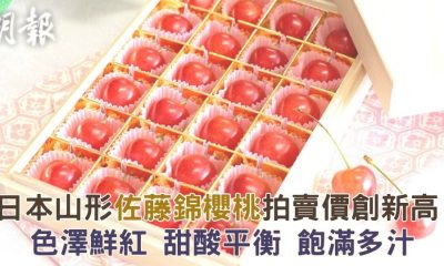 日本山形縣產高檔櫻桃品種「佐藤錦」周一(5日)在天童...