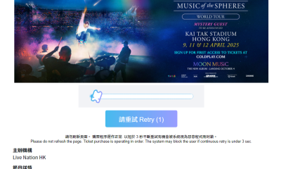 英國搖滾樂隊Coldplay明年4月於啟德體育園主場...