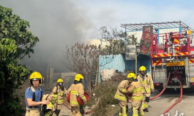 中午12時許,新田嘉龍路近軍營一個存放木材露天倉庫發...