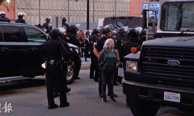 美國洛杉磯實施宵禁第二天(11日),從法新社片段可見...