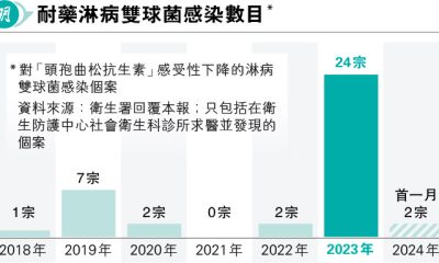 【明報專訊】衛生署去年錄得耐藥性「淋病雙球菌」感染個...