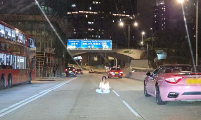 今日(4日)凌晨零時許,一名女子坐在紅磡漆咸道北往土...