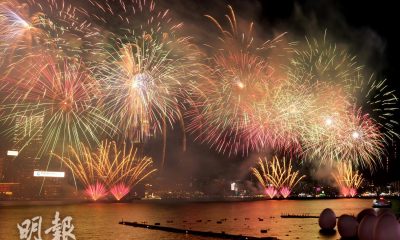 【明報專訊】農曆新年煙花昨晚在維港上空綻放,尖沙嘴海...