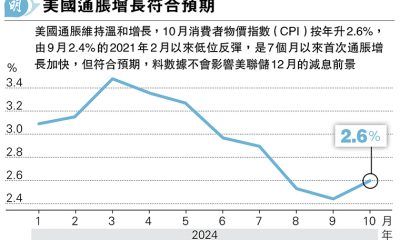 【明報專訊】美國通脹維持溫和增長,10月消費者物價指...