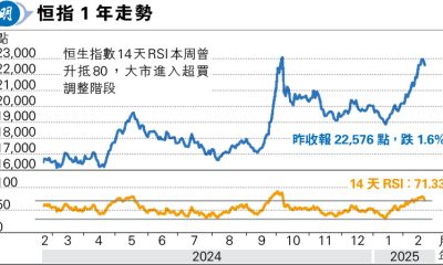 【明報專訊】恒生指數昨日上升360點,收報22,97...