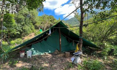大圍顯徑邨顯貴樓後山斜坡近日被發現架設大型帳幕、鐵籠...