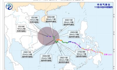 中央氣象台公告,強烈熱帶風暴「天琴」11月28日凌晨...