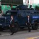 【明報專訊】西九龍法院內外繼續有逾百名警員駐守,佈防...