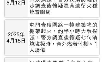【明報專訊】大埔宏福苑昨日發生五級火,外牆竹棚及棚網...