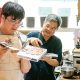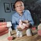 【明報專訊】手執鎅刀,慢慢雕刻長方形的白擦膠,然後在...